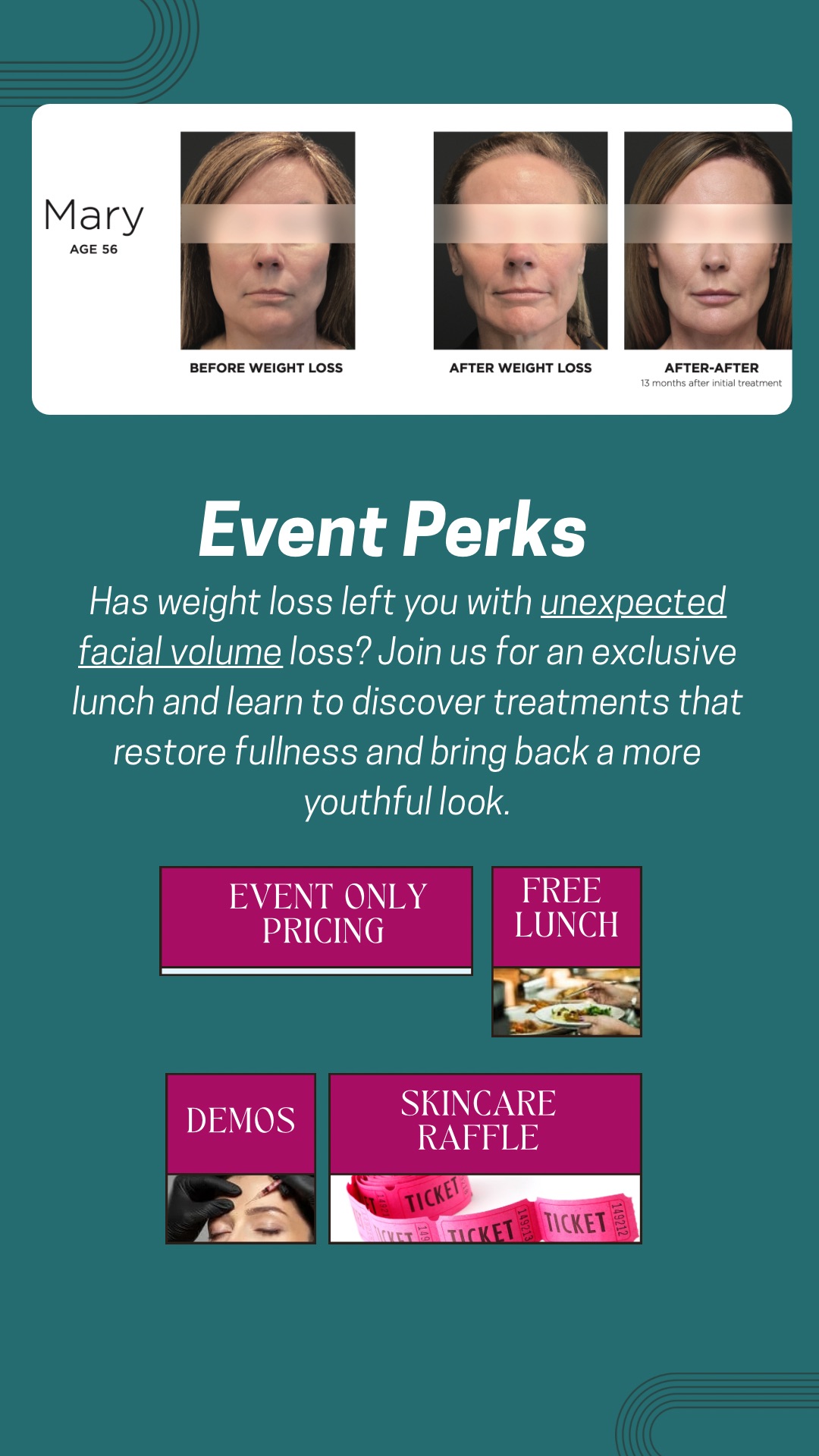 That is why we’re hosting an exclusive Lunch & Learn — the treatment designed to naturally restore lost facial volume, smooth contours, and rejuvenate your appearance from the inside out.